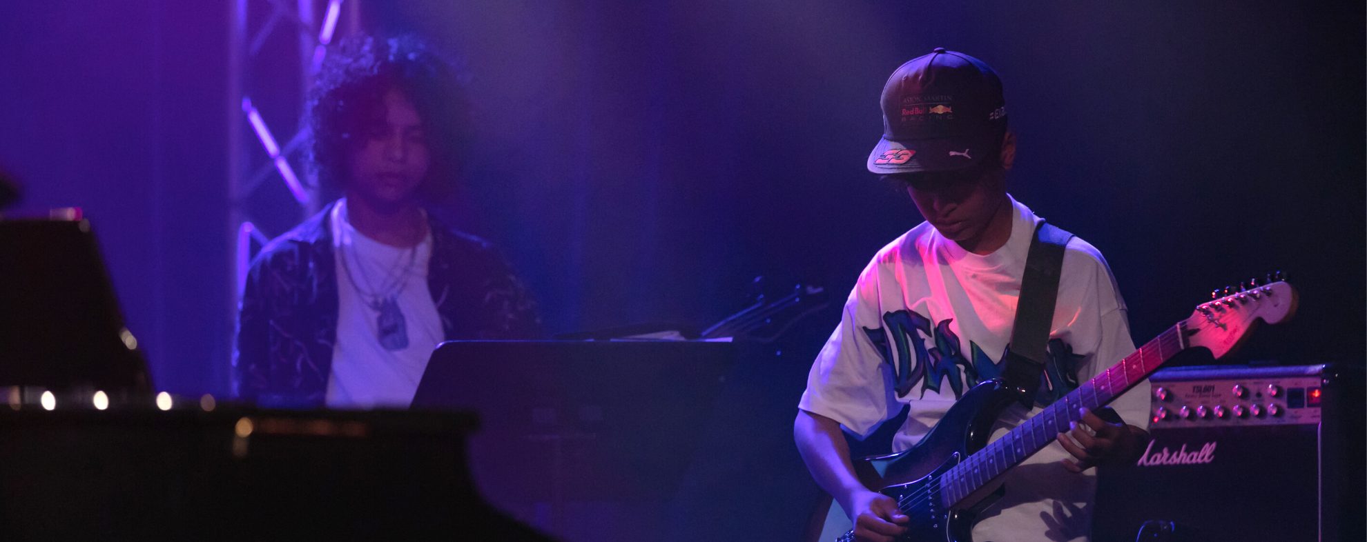 Keyboard/piano drums, basgitaar, elektrisch gitaar, zang